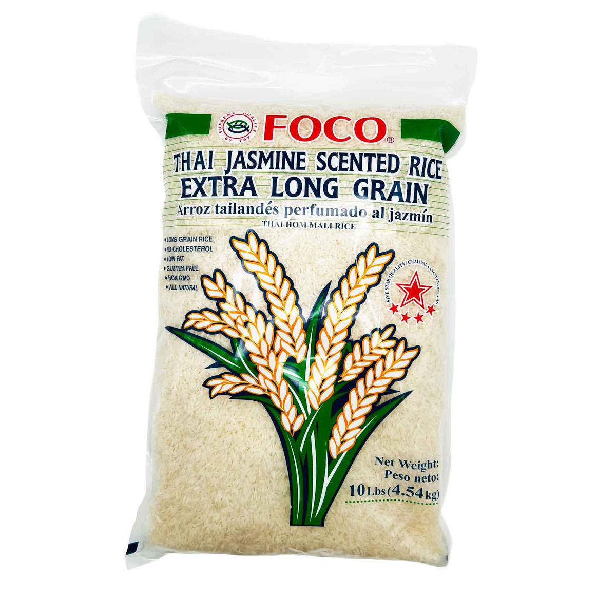 Foco, Thai Jasmine scented Rice, Thai hom mali rice extra long grain arroz tailandes perfumado al jazmin gluten free NET WT. 20lbs (9.08 kgs) UPC 016229908812